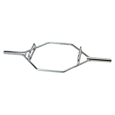 Hexagonal Trap bar. Body positioning within the middle of the trap bar to reduce stress on the lower back for movements like deadlift.