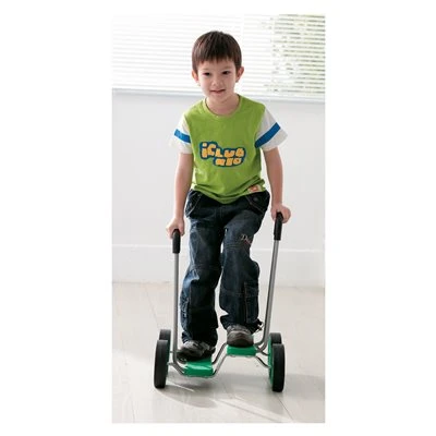 An indoor pedal car, kids balance their way across the floor, one rotation at a time. Interior bearings make for a smooth ride. Powder coated steel supports with soft rubberized foam handles. Wheel Walker takes balance and coordination to another level. At the beginner stage, children use the provided handles while balancing and “walking” their way across the floor. Once ready for the advanced stage, they can remove the handles for another challenge of balance and coordination.