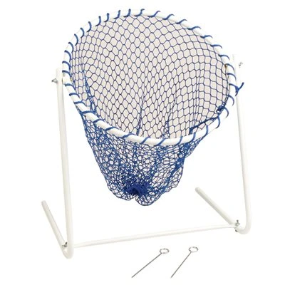 Multi-purpose target hoop made of white powder coated steel with a pivoting hoop. Great for catching any shot from golf to discs to bean bags, this target net is great for practicing and perfecting your swing or throw!